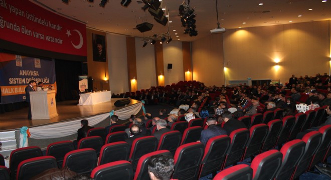 Erzurum Sivil Toplum Platformu (ESTP) tarafından organize edilen "Anayasa Sistem Değişikliği Halk Buluşması" toplantısı, Necip Fazıl Kısakürek Kültür Merkezi'nde gerçekleşti. Erzurum halkından büyük ilgi gören toplantıda, vatandaşlar yeni sistemi sordu, konunun uzmanları yanıtladı.