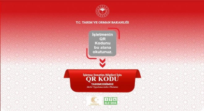 Konuya ilgili açıklamada, "Bakanlığımızca her bir işletmeye özel olarak hazırlanan karekodu https://guvenilirgida.tarimorman.gov.tr/isletme/QRKodOlustur adresi İşletme Karekod sekmesinden oluşturulur. Tüm gıda satış ve toplu tüketim yerlerine gıda işletmesi karekodunun tüketicinin göreceği yerde bulundurulması mecburidir. Tüketiciler görsel üzerinde yer alan karekodu mobil cihazlarına indirmiş oldukları Tarım Cebimde uygulaması üzerinden sorgulattıklarında söz konusu işletmeye ait; kayıt/onay numarası, unvan, adres ve işletmede yapılan en son denetim tarihi bilgilerine ulaşabilecektir." denildi.