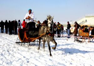 ERZURUM (İHA) - Türkiye Geleneksel Spor dalları Federasyonu Başkanlığı tarafından Erzurum’da düzenlenen atlı kızak yarışları soğuk havada adeta nefes kesti. Erzurum cirit sahasında gerçekleşen yarışlarda 5 ayrı kulübün sporcusu birinci gelebilmek için atlı kızaklarını koşturdu.