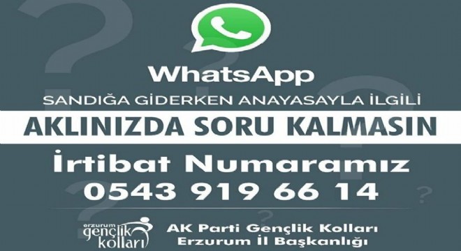 AK Parti Erzurum Gençlik Kolları, ulaşamadığı kararsız seçmenler için özel bir whatsapp hattı kurdu.
