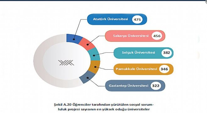 Ürettiği 475 sosyal sorumluluk projesi ile Atatürk Üniversitesi ilk sıraya yerleşirken Sakarya Üniversitesi 456 proje ile ikinci, Selçuk Üniversitesi 382 proje ile üçüncü, Pamukkale Üniversitesi 346 proje ile dördüncü ve Gaziantep Üniversitesi 322 proje ile beşinci sırada yer aldı.