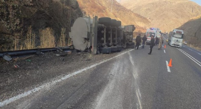 Ağrı’nın Eleşkirt ilçesinde devrilen asfalt yüklü tanker sürücüsü olay yerinde hayatını kaybetti.