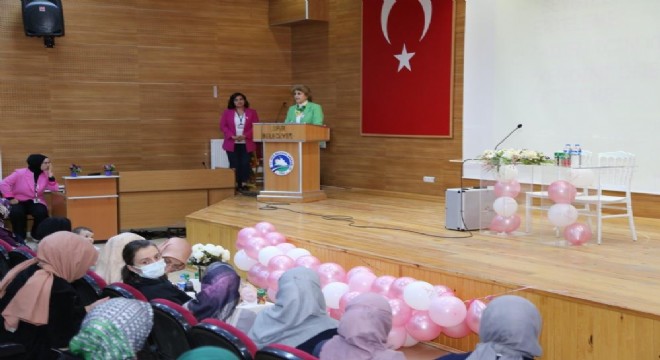 Prof. Dr. Müfide Nuran Akçay, yapmış olduğu konuşmada, kadınlarda en sık görülen kanserin meme kanseri olduğunu belirterek meme kanserinin nedenleri, korunma yolları ve erken tanının öneminden bahsetti.
