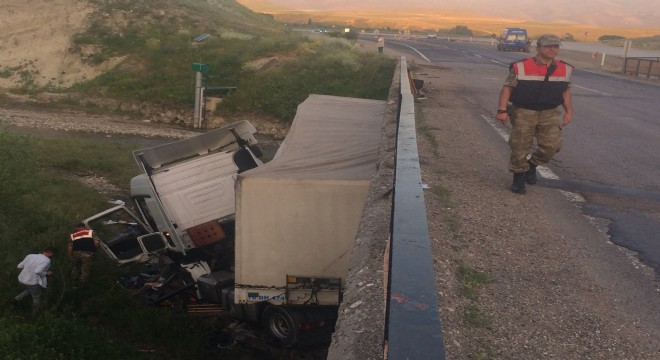Erzurum’un Aşkale ilçesinde virajı alamayan tır köprüden uçtu. Kazada tır sürücüsü yaralandı.