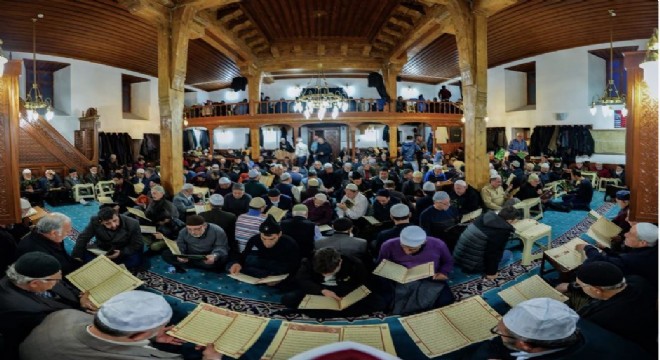 Erzurum’da 'Binbir Hatim' geleneğini sürdüren vatandaşlar, Ayaz Paşa Camisinde sabah namazı öncesi Kuran-ı Kerim okuyarak güne başlıyorlar.