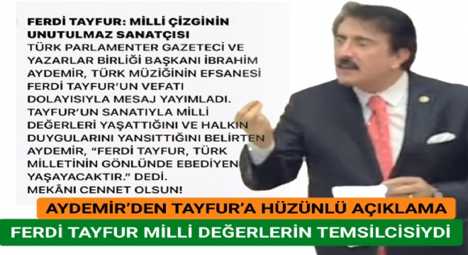 Aydemir, “Ferdi Tayfur, sadece bir sanatçı değil, Türk halkının duygularını, sevinçlerini, hüzünlerini ve umutlarını yansıtan, milli çizgide bir gönül insanıydı. Onun şarkıları, toplumun ruhuna dokunan ve milli birlik duygusunu güçlendiren bir köprü görevi görüyordu. Türk müziği, onun gibi bir değeri kaybetmenin derin acısını yaşıyor.” ifadelerini kullandı.