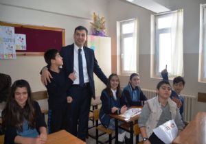 Kaymakam Öz, karne dağıtımında öğrencilerle sohbet ederek yarıyıl tatilini iyi değerlendirmelerini ve kitap okumalarını tavsiye ederek yakın ilgi gösterdi.