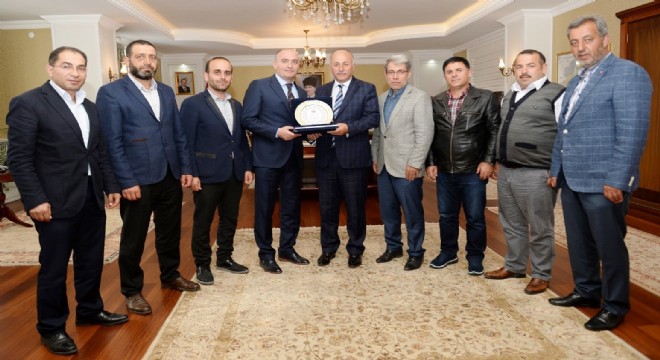 2. OSB yatırımcıları daha sonra Büyükşehir Belediye Başkanı Mehmet Sekmen ve ETSO Meclis Başkanı Saim Özakalın’ı da makamlarında ziyaret ederek, desteklerinden dolayı teşekkür plaketi verdiler.