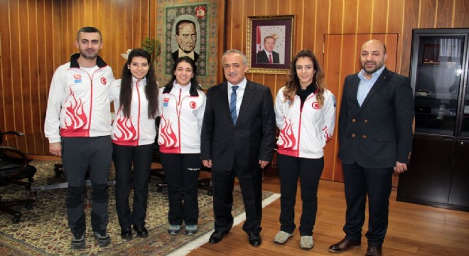 Atatürk Üniversitesi öğrencileri olan ve aynı zamanda Curling Kadın A Milli Takımı oyuncularından takım kaptanı Dilşat Yıldız, Semiha Konuksever, Ayşe Gözütok, Öznur Polat ve Kadın Milli Takım Antrenörü Fatih Ağduman, Rektör Çomaklı’yı makamında ziyaret etti.
