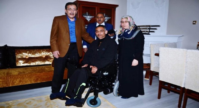 Aslen Erzurumlu olan Bahattin İnci, Emniyet Teşkilatı'nın çatısı altında 21 yıl görev yaptı. Türkiye'nin çeşitli şehirlerinde çalışan ve 21 yıllık polis memuruyken ALS hastalığına yakalanan Bahattin İnci, bir süre sonra çok sevdiği mesleğine veda etmek zorunda kaldı. Malulen emekliye ayrılan ve Erzurum'a yerleşerek amansız hastalıkla mücadele eden Bahattin İnci'nin kapısını bugün Palandöken Belediye Başkanı Orhan Bulutlar çaldı. Polis Haftası münasebetiyle İnci'yi evinde ziyaret ederek geçmiş olsun dileklerini ileten Bulutlar, Dadaş polise bir de akülü araç hediye etti. Hastalığı yüzünden yürüme yeteneğini kaybeden İnci'nin akülü araç sayesinde istediği zaman dışarıya rahatlıkla çıkabileceğini söyleyen Başkan Bulutlar, İnci ailesinin adeta imdadına yetişti.