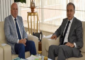 Erzurum Valisi Dr. Ahmet Altıparmak, Erzurum Büyükşehir Belediye Başkanı Mehmet Sekmen’i makamında ziyaret etti. Samimi bir atmosferde geçen ziyarette Başkan Sekmen, Vali Altıparmak’a Büyükşehir’in çalışmaları hakkında bilgi verdi. Sekmen, ziyarete ilişkin yaptığı değerlendirmede, “Valimiz Dr. Ahmet Altıparmak’a Erzurum ve ilçelerimize yaptığımız hizmet ve yatırımları, projelerimizi anlattık. Şehrimiz; bürokratlarımızın fikir, düşünce ve önerileriyle, Erzurum sevdasını taşıyan birlik ve beraberlik paydasında büyüyecek. Bu nedenle idari, adli, askeri yetkililerimizle ve sivil inisiyatif kurumlarımızla Erzurum’u kalkınmış iller sıralamasında lider şehirlerden biri yapacağız. Gaye ve hizmet şiarımız budur” dedi. Bu arada Başkan Sekmen, Erzurum Valisi Dr. Ahmet Altıparmak’ın ziyareti sonrası Erzurum İl Emniyet Müdürü Kamil Karabörk’ü makamında ziyaret etti. Samimi bir atmosferde geçen ziyarette İl Emniyet Müdürü Karabörk, emniyet hizmetleriyle ilgili Sekmen’e bilgi verdi.