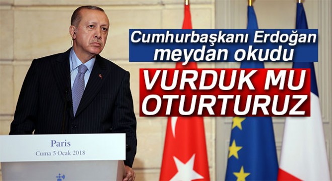 Cumhurbaşkanı Recep Tayyip Erdoğan, terör örgütlerine meydan okuyarak, "Biz vurduk mu oturturuz. Ne PKK bir şey yapabilir, ne YPG! Haydi güçleri yetiyorsa, terör koridoru meselesinde yürüsünler" dedi.