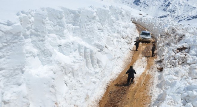 Mergezer yaylasında kardan oluşan tüneller şaşırtırken, 5 metre boyunda karla mücadele çalışması yoğun bir şekilde devam ediyor.