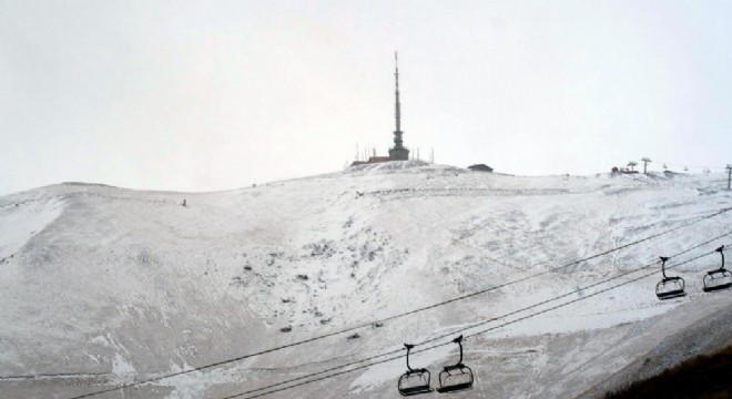 Palandöken'in zirve noktası olarak bilinen Ejder Tepesi karla beyaza büründü.