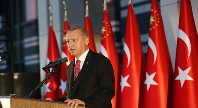 Demokraside ve ekonomide güçlü Türkiye için yürütülen mücadelenin sembolünü açıklayan ve tek millet, tek bayrak, tek vatan, tek devlet vurgusunu yineleyen Erdoğan, “Bizim kimsenin tek karış toprağında gözümüz yok. Ama bizim kendi topraklarımıza dikilen gözlere, egemenlik haklarımıza uzanan ellere, istiklalimize ve istikbalimize yönelen tehditlere de en küçük bir tahammülümüz olamaz. Bugün Irak’ta, Suriye’de, Doğu Akdeniz’de ve coğrafyamızın dört bir yanında verdiğimiz mücadelenin tek bir gayesi bulunuyor, bu gaye öncelikle Türkiye Cumhuriyeti Devletinin haklarını savunmak, bunun yanında dost ve kardeş halkların güvenliklerini de temin etmektir. Çünkü sınırlarımız ötesinde milyonlarca insanın hayatı tehlike altındaysa bizim burada huzur içinde yaşayabilmemiz mümkün değildir. Türk milleti dostları ve kardeşleri ateş çemberi ile çevriliyken bunu sırtını dönecek, ‘bana dokunmayan yılan bin yaşasın’ diyebilecek bir millet değildir. Dünyanın neresinde bir mazlum zulüm altındaysa, bir mağdur kendisine ulaşacak yardım eli bekliyorsa orada olmak inancımızın, kültürümüzün bir gereğidir. Bugün nasıl bir millet olarak ecdadımızın geride bıraktığı hayırlı hizmetlerle gurur duyuyorsak, sonraki nesillere de benzer bir mirası bırakmayı namus borcumuz kabul ediyoruz. Bunun için zaferlerimizi sadece savaş alanlarındaki başarılarımızla toprakların fethini değil, aynı zamanda gönüllerin fethini de ifade eden dönüm noktaları olarak görüyoruz. Zaferlerimize ne kadar sıkı sahip çıkarsak gönül kapılarını açma konusundaki başarılarımızı da o derece iyi hatırlar ve uygularız. Bayrağımızla girdiğimiz her yerde samimi bir hüsnükabul ile karşılanıyor olmamızın sebebi budur. Çünkü biz öldürmek, yıkmak, yok etmek değil, yaşatmak, inşa etmek, ihya etmek için gideriz ve gereğini de yerine getiririz. Son dönemde Afganistan’dan Kosova’ya, Somali’den Bosna’ya kadar askerlerimizin görev yaptığı her yerde inşa faaliyetlerimiz güvenlik faaliyetlerimizin katbekat üstünde olmuştur. TİKA’dan AFAD’a, Kızılay’dan Yurtdışı Türkler Başkanlığımıza kadar tüm kurumlarımız bayrağımızı dalgalandırdıkları her yerde aynı anlayışla faaliyet yürütmüştür. Herkesin sömürmek, kendine bağımlı kılmak, askeri veya ekonomik lojistik ihtiyacını gidermek için gittiği yerlerde biz insanların hayatına dokunan kalıcı projeleri hayata geçirmek için çalışıyoruz. Bu bazen okul, bazen hastane, bazen ibadethane, bazen yollar, alt yapı, bazen su, işte biz bunlar için varız. Bu şekilde adeta dişimizle, tırnağımızla kurup geliştirdiğimiz gönül bağları sayesinde Türkiye 82 milyon nüfusu ve 81 vilayetinin çok ötesinde bir etki alanına ve güce sahip olmuştur. İnşallah arkamızdaki bu gücün de desteği ile hedeflerimize birer birer ulaşacak, yeni zaferlerimizi hep birlikte milletimize armağan edeceğiz” ifadelerini kullandı.