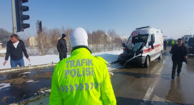 Erzurum'da ambulans ile birlikte iki ayrı noktada 4 aracın karıştığı trafik kazasında biri ağır 9 kişi yaralandı.
