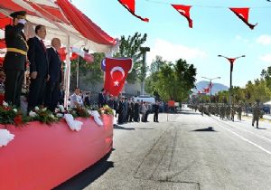 Vali  Dr. Ahmet Altıparmak’ın askeri birlikler ile halkın bayramını kutlamasıyla başlayan buradaki törenlerde, Türk Silahlı Kuvvetleri ve Muharip Gaziler Derneği adına günün anlam ve önemini belirten konuşmalar yapılırken, öğrenciler tarafından şiirler okundu.