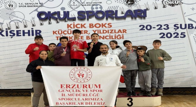 Eskişehir’de yapılan Okul Sporları Kick Boks Türkiye Şampiyonası’na katılan Erzurumlu sporcular iki Türkiye şampiyonluğu, bir ikincilik bir de üçüncülük derecesi kazandı.