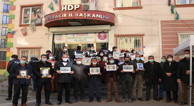 Aileler, açıklamanın ardından 'HDP binası Kandil yuvası' sloganları atarak çocuklarının fotoğraflarını binaya doğru tuttu.