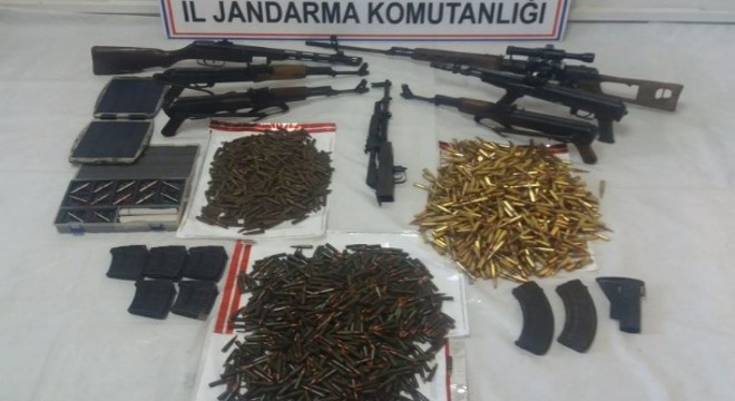 Açıklamada,"Merkez kırsalında İl Jandarma Komutanlığımızca yapılan operasyonda, 1 adet dragonov keskin nişancı tüfeği, 5 adet kaleşnikof piyade tüfeği, 1 adet makineli tabanca, 899 adet 7,62x54 mm fişek, 1571 adet 7,62x39 mm fişek, 5 adet dragonov şarjörü, 2 adet kaleşnikof şarjörü, 1 adet M-16 dipçiği, 1 adet güneş paneli, 1 adet ateşleyici sistem takımı ve çok miktarda yaşamsal malzeme ele geçirilmiştir"denildi.