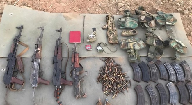 Milli Savunma Bakanlığından yapılan açıklamaya göre, son olarak tespit edilen bazı sığınaklarda; 4 adet AK-47 Piyade tüfeği, 13 adet AK-47 Piyade tüfeği şarjörü, 300 adet 5.56 mm piyade tüfeği mermisi, 2 adet el bombası, 2 adet 107 mm’lik ÇNRA mühimmatı, 1 çuval demir misket, 60 adet pil, EYP yapımında kullanılan malzemeler ile çok miktarda yaşam malzemesi ele geçirilerek imha edildi.