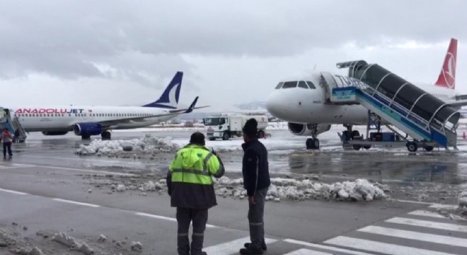 Erzurum’da dün akşam saatlerinden itibaren etkili olan kar yağışı hava ulaşımını da olumsuz yönde etkiledi.