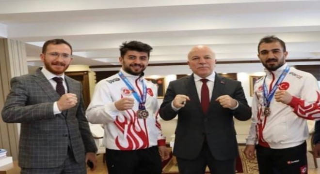 Erzurum Büyükşehir Belediye Başkanı Mehmet Sekmen ile Büyükşehir Belediyesi Gençlik Spor Kulübü Başkanı Ahmet Dal, Antrenör Emre Şahin ile sporculara başarı dileklerini iletti.