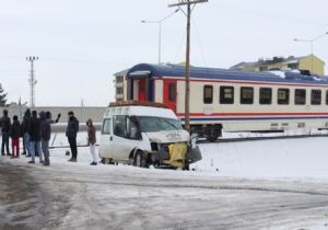 Horasan’da tren minibüse çarptı: 1 yaralı