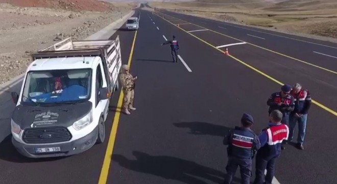 Erzurum İl Jandarma Komutanlığı Trafik ekipleri Erzurum-Bingöl karayolunda drone destekli uygulama gerçekleştirdi.