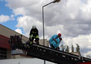 Eş zamanlı düzenlenen uygulamalarla, binadan personelin , yatan hastaların tahliyesi, çeşitli kurtarma teknikleri ile alt ve üst katlarda mahsur kalanların kurtarılması, yangın söndürme teknikleri uygulamalı olarak gösterildi.