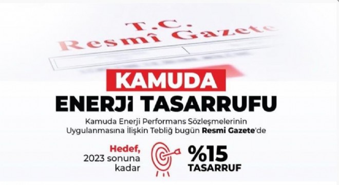 Kamuda Enerji Performans Sözleşmelerinin Uygulanmasına İlişkin Tebliğ, Resmi Gazete'de yayımlandı. Enerji ve Tabii Kaynaklar Bakanı Fatih Dönmez, 2023 yılı sonuna kadar kamu kurum ve kuruluşlarında tasarruf hedefinin yüzde 15 olduğunu hatırlatarak, “Hedefi gerçekleştirmemiz durumunda elde edeceğimiz tasarruf miktarı yıllık 870 milyon TL olacak” dedi.