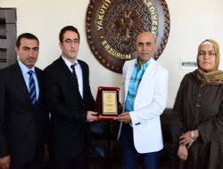 ERZURUM (İHA) - Yakutiye Kent Meydanına kurdukları çadır ile Ramazan ayına rağmen günlük 40-50 kişiden kan bağışı alan Kızılay Kan Merkezi yetkilileri teşekkürlerini Yakutiye Belediye Başkanı Ali Korkut’a plaket takdimiyle yaptılar. Kızılay Kan Merkezi Müdürü Fırat Karakurt, Yakutiye Kent Meydanı marifetiyle insanlardan kan bağışı aldıklarını söyledi.