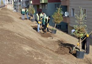 Yakutiye Belediyesi, Kırmacı semtinde yol kaldırım çalışmalarının ardından tamamlayıcı çevre düzenlemesi çalışmalarını yapıyor. Kırmacı semtine önceden yapılan çevre düzenlemesine ek olarak oluşan yeşil alanlar ağaçlandırılıyor.