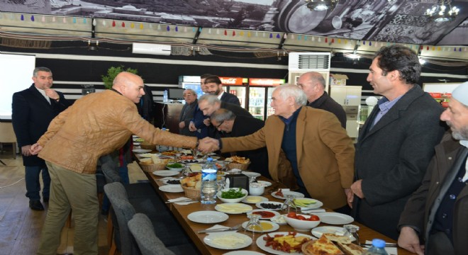 Yakutiye Belediye Başkanı Ali Korkut, 36 bağlı köy/mahalle muhtarı ve 8 merkez mahalle muhtarıyla kahvaltı da buluştu. 22 milyon lira bütçeyle devraldığı belediyenin 100 milyonu aşan bir bütçeye ulaştığını hatırlatan Ali Korkut, “Maaş ödeyemeyen bir belediyeden yatırım yapan, hizmet üreten belediyeye dönüşümün hikâyesi uzun ve anlamlıdır. Akılcı bir yönetimle Erzurum’un merkezini değiştirmeyi, dönüştürmeyi başarıyoruz. Tarihi eserlerin çevresinin açılmasını düşünen tek belediye olduk. Erzurum’a Yakutiye Kent Meydanını kazandırdık, Murat Paşa Kent meydanı ise 2017’de tamamlanacaktır. İstanbul Kapı, yeni yıla yenilenerek girecektir. Üç Kümbetlerde şükür proje onaylandı, 2017 yılında projenin büyük bir bölümünü gerçekleştireceğiz. Hasanibasri, Mehdiefendi, Habibefendi, kentsel yenilenme sürecini tamamlayan bölgelerimiz. Hacıcuma, Taş Mescit, Kadana, gibi semtlerde kentsel dönüşüm sürüyor. Niye anlatıyorum, bu bizim belediye olarak değişimimizin ve gücümüzün geldiği noktaları gösteriyor. Bunları yaparken, cadde ve sokakları, mahalleleri unutmuyoruz.