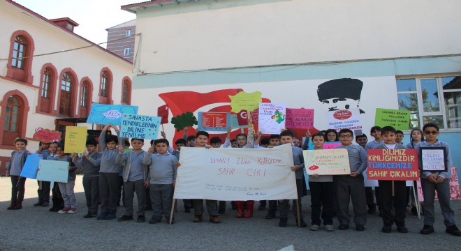 Erzurum’da ilkokul öğrencileri öğretmenlerinin başlattığı proje kapsamında günlük dilde kullanılan yabancı kelimeler yerine Türkçe kelimeler kullanıyor.