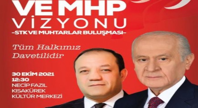 “2023 Lider Türkiye ve MHP Vizyonu” buluşmalarının milletin beklentilerini görme, analiz etme ve ona göre de yol haritası oluşturma amacı taşıdığını dile getiren MHP Erzurum İl Başkanı Naim Karataş, “Biz milletimizle el eleyiz, iç içeyiz, omuz omuzayız. Bu manada muhtarlarımız ve sivil toplum kuruluşu temsilcilerimizle bir araya gelecek ve Erzurum’a dair tespitlerde bulunacağız. Tüm partililerimizi, sivil toplum kuruluşlarımızı ve muhtarlarımızı 30 Ekim Cumartesi günü saat 12.30’da Yenişehir AVM’deki Necip Fazıl Kısakürek Kültür Merkezi’ne bekliyoruz” dedi.