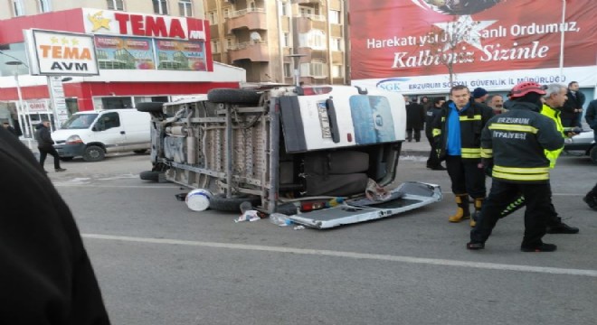 Edinilen bilgiye göre, Erzurum Yakutiye Belediyesi DGM kavşağında sabah saatlerinde meydana gelen trafik kazasında Yoncalık Caddesi’nden Menderes Caddesine seyreden 25 FF 522 plakalı cezaevi personelini taşıyan servis minibüsü ile Tebrizkapı semtinden Cumhuriyet caddesine seyreden 81 FB 027 plakalı sebze yüklü minibüs ile çarpıştı. Dikkatsizlik sonucu meydana gelen kazada servis minibüsünde bulunan yolculardan biri ağır 5 kişi yaralandı. Yaralılar ambulansla hastaneye kaldırılırken, kazaya karışan araçlar çekicilerle bölgeden alındı.