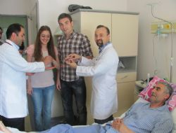 ERZURUM (İHA) - Erzurumlu genç çift nişan yüzükleri takılacağı gün ani rahatsızlanan baba Ercan Aksoy için yüzük takma törenini iptal ederek, baba Aksoy’un tedavisine koştular. By-pass ameliyatı olan Aksoy, servise çıktıktan sonra genç çiftin nişan yüzükleri ameliyat yapan doktorlar tarafından özel hastanede takıldı.