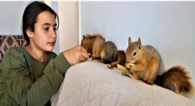 Erzincan’ın Güllüce köyünde ikamet eden İlhan Taşdelen, ağaç budamaya gittiği Tandırlı köyünden dönerken yol kenarında ağaçtan düşen yavru sincapları buldu. Anne sincabın köpek tarafından boğulduğunu gören Taşdelen, yavru sincapları alarak evine götürdü. Sincapları bulduğunda gözleri açılmamış olduğunu belirten Taşdelen, bütün ailesinin sincapları çok sevdiğini bakımlarını hep birlikte yaptıklarını söyledi. Annesinin süt, ekmek ve fındıkla beslediği sincapları biraz daha büyüttükten sonra doğaya geri bırakacaklarını kaydeden Taşdelen, “Tandırlı köyünde ağaç kestikten sonra dönüş yolunda bir ses geldiğini duydum. Ve baktığımda köpek sincaplardan bir tanesini götürüyordu. Durdum, motordan indim ve aşağıda 3 yavru daha olduğunu gördüm. Gözleri daha açılmamıştı ve çok güzel görünüyorlardı. Bende alıp eve götürmeyi bir süre baktıktan sonra doğaya geri salmayı düşündüm. Alıp evime getirdim sincapları. 3 tane kızım vardı, 3 tane daha oldu şimdi 6 tane kızım var. Sincaplara güzelce baktık büyüttük biraz daha büyüttükten sonra Allah’ın izniyle sincapları doğaya geri salacağım.” şeklinde konuştu.