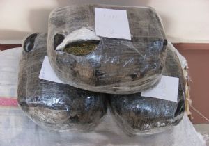 Edinilen bilgiye göre, otobüs terminali yolcu bekleme salonunda bekleyen M.K isimli şahsın durumundan şüphelenilmesi üzerine, şahsa ait çuval kontrol edilerek çuval içerisinde battaniyelere sarılı vaziyette, üç ayrı paket halinde ve dış yüzeyi streç filmle sarılı şekilde, toplam ağırlığı 17 kilo 320 gram uyuşturucu ot esrar maddesi ele geçirildi.