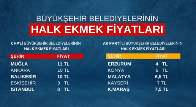 Erzurum Büyükşehir Belediyesi'nde halk ekmek 4 liraya satılırken, CHP'li Ankara Büyükşehir Belediyesi'nde 10 liraya satıldığına dikkat çekerek, "Aradaki bu fark seçim dönemlerinde verilen ‘sosyal belediyecilik' vaadinden ne kadar uzaklaştığının bir göstergesi" dedi.