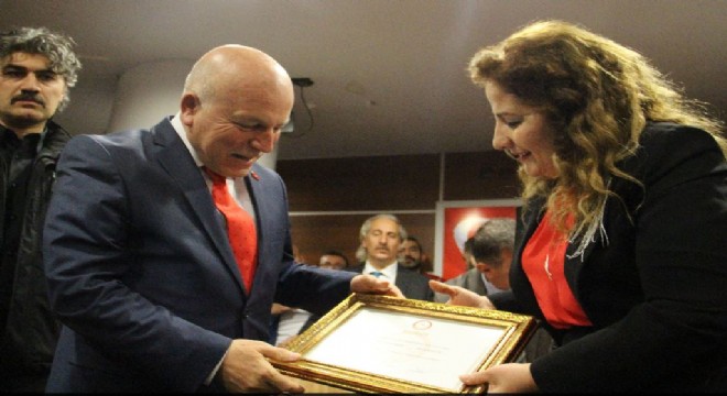 Belediye Başkanları mazbatalarını Erzurum İl Seçim Kurulu Başkanı Hakim Emine Kahraman, Aziziye İlçe Seçim Kurulu Başkanı Ağır Ceza Mahkemesi Hakimi Ömer Özgür Ercan ve Server Şimşek’in elinden aldı.