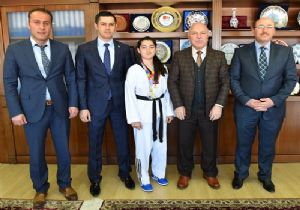 Avrupa Şampiyonu Tuğçe Yamanoğlu, ziyarette yaptığı değerlendirmede, “Hedefim Olimpiyat şampiyonu olmak. Çok çalışacağım Dünya ve Olimpiyat şampiyonu olacağım. Uluslararası şampiyonalarda ülkem ve Erzurum’u en iyi şekilde temsil edip ay yıldızlı bayrağımı dalgalandıracağım” diye konuştu. Taekwondo Federasyonu Erzurum İl Temsilcisi Engin Akın da, Başkan Sekmen’e ilgili spor branşıyla alakalı bilgi verdi. Başkan Sekmen ile birlikte şehrin sporda reform dönemi yaşadığına vurgu yapan Akın, “Erzurum sporda sıçrama dönemini ya da bir başka ifadeyle Rönesans yaşıyor. Başkanımız spora ve sporcuya büyük önem veriyor” şeklinde konuştu. Antrenör Yamanoğlu da, kızının başarısıyla hem baba hem de antrenörü olarak çifte mutluluk yaşadığını vurgulayarak, desteklerinden dolayı Başkan Sekmen’e teşekkür etti. Milli sporcu Yamanoğlu ve beraberindekiler daha sonra Erzurum Büyükşehir Belediyesi Genel Sekreter Yardımcıları Ünsal Kıraç ve Selami Keskin’i de ziyaret etti.