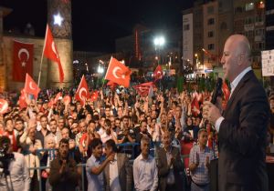 Yakutiye Kent Meydanı’nda toplanan Dadaşlar Esat Kabaklı ve İbrahim Erkal’ın hürriyet temalı şarkılarıyla adeta coştu. Erzurum Büyükşehir Belediye Başkanı Mehmet Sekmen, demokrasi nöbetinde halka hitaben yaptığı konuşmada, Erzurum Kongresi’nin 97. yıldönümünü hatırlatarak, tarihin tekerrür ettiğini ifade etti. Başkan Sekmen, “Erzurum için önemli bir günü yaşıyoruz. Tarih tekerrür ediyor. 97 yıl önce ülkemiz yedi düvel tarafından işgal edilmişti. Mehmet Akif’in, ‘Tek dişi kalmış canavar’ diye ifade ettiği batılılar tarafından işgal edilmişti ülkemiz. İşte öyle bir zamanda milli kahramanımız Mustafa Kemal Atatürk İstanbul’dan yola çıkar Samsun’a, oradan Havza’ya, oradan Amasya’ya, oradan da Erzurum’a gelir. 23 Temmuz - 7 Ağustos tarihleri arasında Erzurum’da o tarihi kongre toplanır ve önemli kararlar alınır. İşte o günün 97. yıldönümünde bulunuyoruz” dedi. Sekmen, şöyle devam etti: “Bugün şanlı tarihimizin dönüm noktalarından biri olan Erzurum Kongresi’nin 97. yıldönümünü kutluyoruz. Sevgili gençler, bilelim ki bu ülke bize kolay emanet edilmedi. Çok büyük mücadeleler neticesinde canlar pahasına bu vatan bize emanet edildi. Harap ve bitap bir haldeyken, yabancıların işgali altında olan Anadolu’da milli iradeyi hâkim kılmak için yurdun dört bir sathından buraya gelen dava adamları, tek bir neden için bu şehirde toplandı. İşte o nedenin adı ‘Vatan’dı. Manda ve himayeyi kabul etmeyerek ‘Vatan bir bütündür parçalanamaz’ diyen ecdadımız o gün yedi düvele bir mesaj verdi: Bu mesaj şuydu: ‘Çelik gibi kollu, tunçtan ayaklı / Göğsü imanlı, temiz vicdanlı / Türk hiç yılar mı, Türk yılmaz / Cihan yıkılsa, Türk yılmaz!’ İşte 97 yıl sonra bu necip millet, darbeci cuntacıların her türlü hain planı karşısında milli iradenin yanında yer alarak kenetlendi, yediden yetmişe her etnik yapıdan insanlarımız bir oldu, beraber oldu, kardeş oldu meydanları hınca hınç doldurdu. Çoluk, çocuk, kadın, erkek, genç, yaşlı demeden hep beraber kardeşçe bir ve beraber olduk. Çünkü biliyoruz ki bir olursak, beraber olursak, kenetlenirsek bizi kimse yıkamaz.”