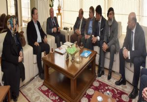 Ege Bölgesi Erzurum Dernekler Birliği Federasyonu Başkanı Muzaffer Okumuş ve Yönetim Kurulu Üyeleri ile Bornova Erzurumlular Derneği Başkanı Sinan Gültekin ve Yönetim Kurulu Üyeleri, Erzurum Büyükşehir Belediye Başkanı Mehmet Sekmen’i ziyaret etti.