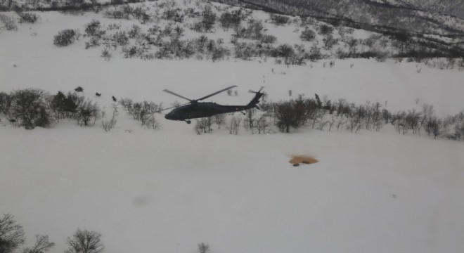 Doğa Koruma ve Milli Parklar Şubesi tarafından karadan yapılan yemleme çalışmalarına bu kez asker de Skorsky helikopterlerle havadan destek verdi. Yaban hayvanları için temin edilen ot, ekmek, mısır ve buğdaydan oluşan yaklaşık yarım tonluk yiyecek, doğa koruma ekipleri ve jandarma personeli tarafından Skorsky tipi helikopterlere konularak çetin geçen kış mevsimi nedeniyle zor şartlarda bulunan yaban hayvanları için doğaya bırakıldı. Karla kaplı doğada yaban hayvanları için yemleme çalışmalarının devam edeceği bildirildi.