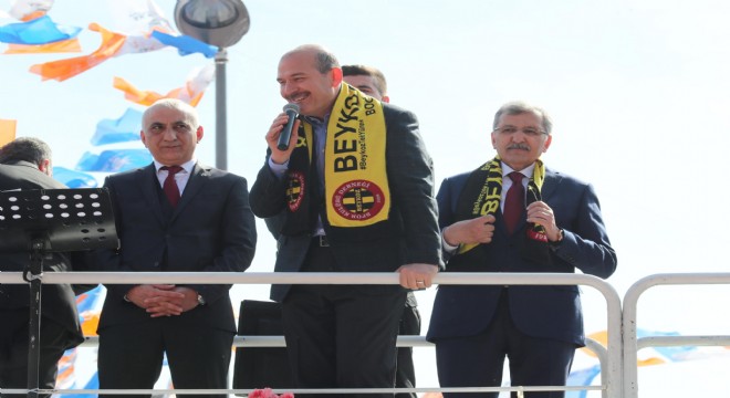 Bakan Soylu, “Yıllardan beri bunlar başımızda boza pişirdi. Siz iktidar olursunuz ama muktedir olamazsınız dediler. Onlar tehdit etmelerine rağmen Beykozlular olarak cevap verdiniz hem muktedir hem iktidarsınız dediniz. 6-7 Ekim, 15 Temmuz olayları 6-7 yıl arasında bize patinaj yaptırmak için ellerinden geleni yaptılar. Biz potansiyeli güçlü olan bir ülkeyiz. Bütün bunlara rağmen büyük mücadeleleri ortaya koyuyor. Milletle beraber geleceğe doğru ilerliyoruz. Bir taraftan terörle mücadele ediyoruz. Şimdi bana kızıyorlar, çok sert konuşuyormuşum. Ben PKK’nın milletvekillerine vekil demem. Onlar bu milletin değil terörün vekilidir. HDP’nin siyasi temsilci sırtımızı PKK’ya dayadık dedi. Şimdi git 4 duvara daya. Aponun serbest bırakılması için yürüyüş yapacaklarmış. Ben de dedim ki, “Ulan sizi yürüten adam değildir.” Diyarbakır’a Erdoğan gidecek ya, HDP’liler böyle grev falan yaptılar. Polisimiz bariyerleri şak diye aldı onları çuvalına içine soktuk. DHKP-C operasyonu Türkiye’de yapıldı. Türkiye sorumlusunu aldık, 8 kişiyi paket ettik” ifadelerini kullandı.