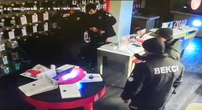 Erzurum'da camını kaldırım taşı ile kırarak girdiği cep telefonu bayisinde cep telefonlarını çalmaya çalışan şahıs polis tarafından suçüstü yakalandı.
