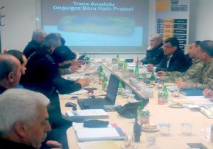 Toplantı sonrası açıklamada bulunan Pasinler Kaymakamı Ali Ada, ‘Görüş alışverişinde bulunduğumuz toplantı gayet verimli oldu. TANAP projesinin Lot-1 olarak adlandırılan Gürcistan sınırından Erzincan İlimize olan 375 km’lik kısmında yapılan inşaat faaliyetlerinin ana şantiyesi ilçemizde bulunmaktadır. Yaklaşık bin 500 Türk işçisinin ve 55 yabancı personelin istihdam edildiği şantiyede işçilerimiz vardiya usulü geceli gündüzlü çalışmaktadır. Ülkemizde bin 850 km ana hat üzerinde inşa edilecek hattın coğrafi ve iklim şartları bakımından en zorlu güzergahı ilçemizden de geçecek olan 375 km lik Lot-1 kısmıdır. Fay hatlarının kilometrelerce uzandığı coğrafi yapı ve -35 derece soğukta toprağın donduğu mezarların bile sonbaharda hazırlanmak zorunda kalındığı iklim şartlarında arazide çalışanlarımızın ne zorluklar içerisinde çalıştıklarını tasavvur etmek zor olmasa gerek. İlçemizdeki şantiyemiz bu yılın başında kurulmuş olup, yaklaşık 5 aydır arazide güzergahın hazırlanması, inşaat koridorunun açılması ve yine ülkemizde Türk Mühendis ve işçisi tarafından üretilen boruların nakli, dizgisi ve kaynakla birbirine bağlanması devam etmektedir.”dedi.