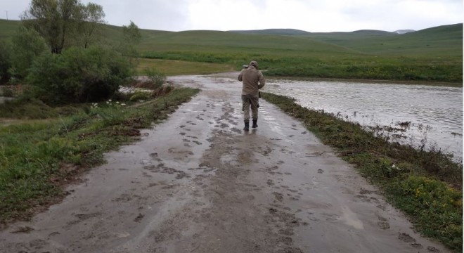 Tekman ilçesinde etkili olan sağanak yağış ve eriyen kar suları su baskınlarına neden oldu.
